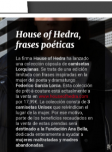 La influencer y escritora lleva Camiseta Lorquiana Llorar