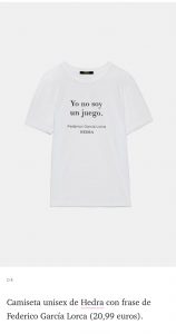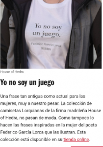 La actriz lleva Camiseta Lorquiana Llorar