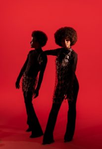 Los bailarines del videoclip «Rúmbala» con Vestidos y Falda Diamond Metacrilate de Mad City